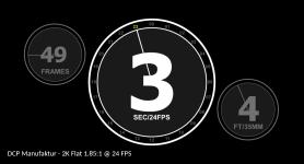 Als technischer Vorspann wird ein sogenannter Leader benutzt. Er ist 192 Frames / 8 Sek. lang mit einem Sync-Ton 2 Sekunden vor F(irst) F(rame) O(f) A(ction) und kann auch bei einem 25 FPS Projekt benutzt werden (er läuft dann schneller ab) – den Leader als H.264 und TIFF in 16 bit in den gängigen Auflösungen in 24 FPS finden Sie hier zum herunterladen: